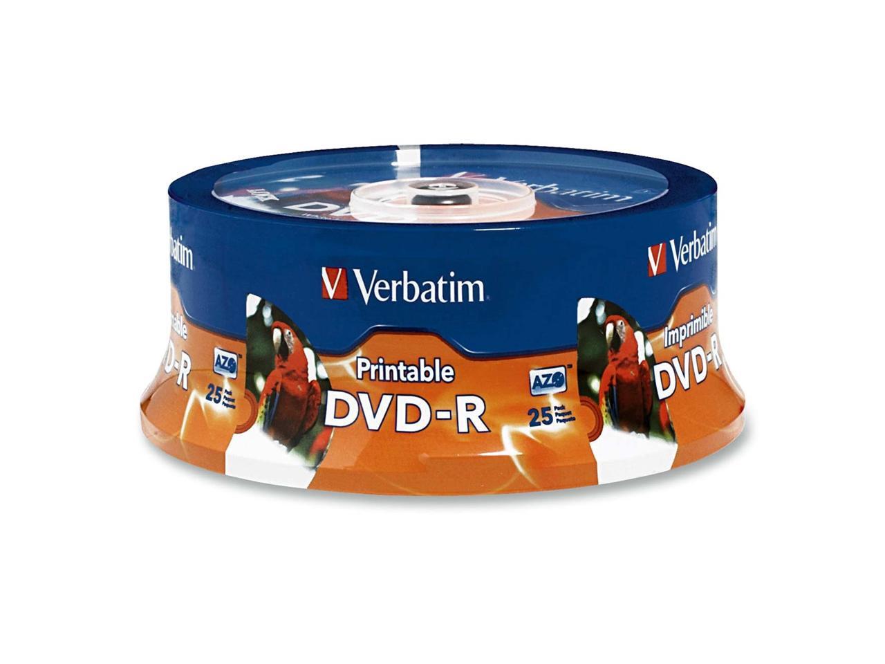 Verbatim 4.7GB 16X DVD-R Inkjet Printable, Hub Printable 25 Packs Spindle 25Pkg DVD Recordable Media Model 96191