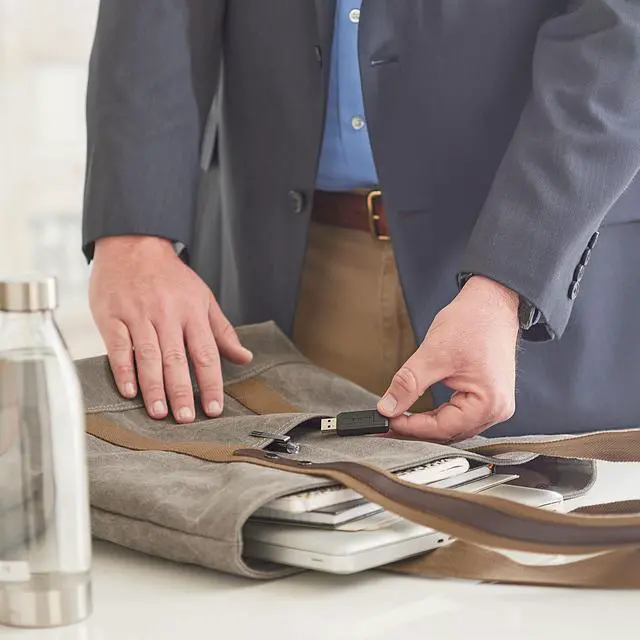 • Pinstripe USB Drive makes transporting and sharing files simple