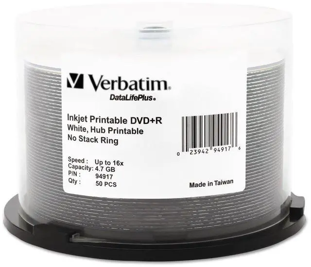 Verbatim offers a wide range of printable discs, including shiny silver, inkjet and thermal printable, with options for a printable or branded hub. Be sure the disc surface type matches the requirements of your disc printer.