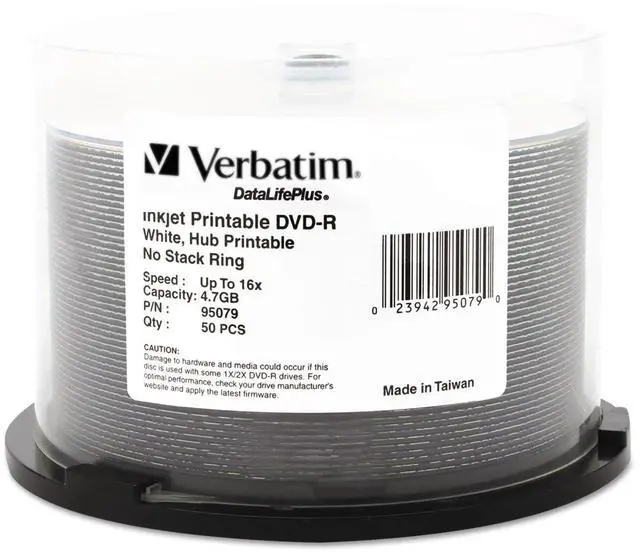 Verbatim offers a wide range of printable discs, including shiny silver, inkjet and thermal printable, with options for a printable or branded hub. Be sure the disc surface type matches the requirements of your disc printer.