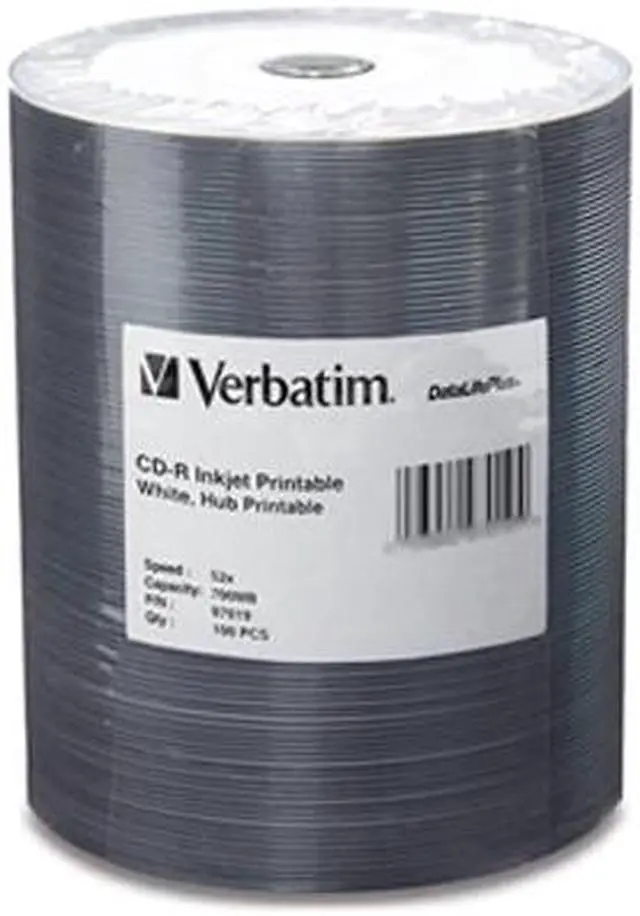 Verbatim 700MB 52X CD-R Inkjet Printable Hub Printable 100 Packs Spindle DataLife Plus Media Model 97019