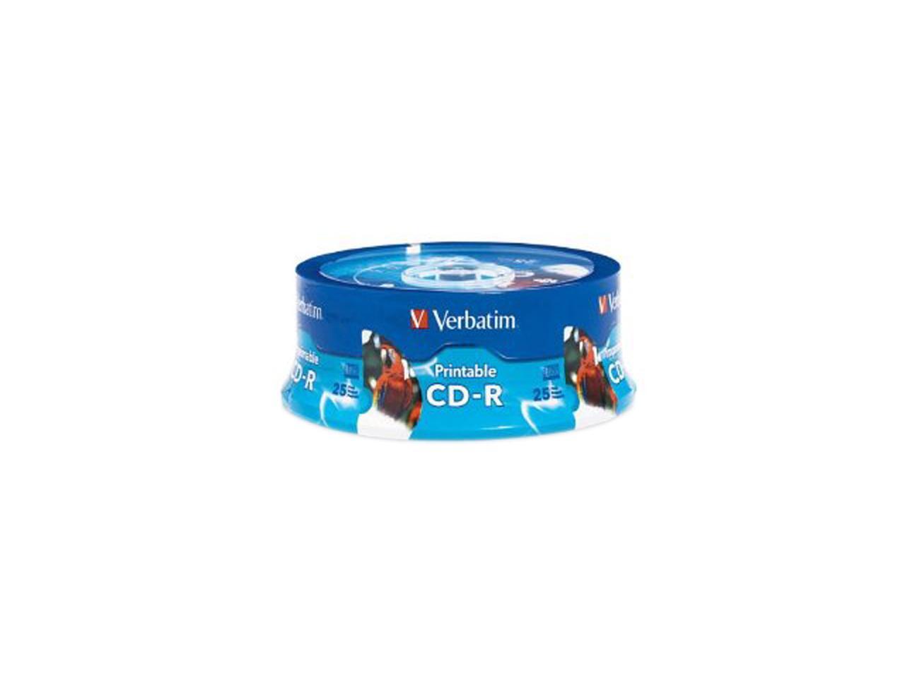 Verbatim 700MB 52X CD-R White Inkjet Printable, Hub Printable 25 Packs Spindle Disc Model 96189