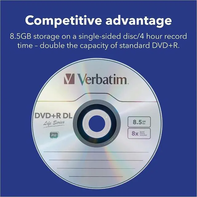 DVD+R is a writeable disc with 4.7GB storage capacity. Meets the +RW Alliance specifications.DVD+R DL of the Life series is optimised for data and video applications.Optical discs are the ideal solution for long-term and secure storage of your important files - ideal for your precious photos, videos and documents you want to store forever. They are not only dust and water resistant, but also withstand strong temperature and humidity fluctuations.