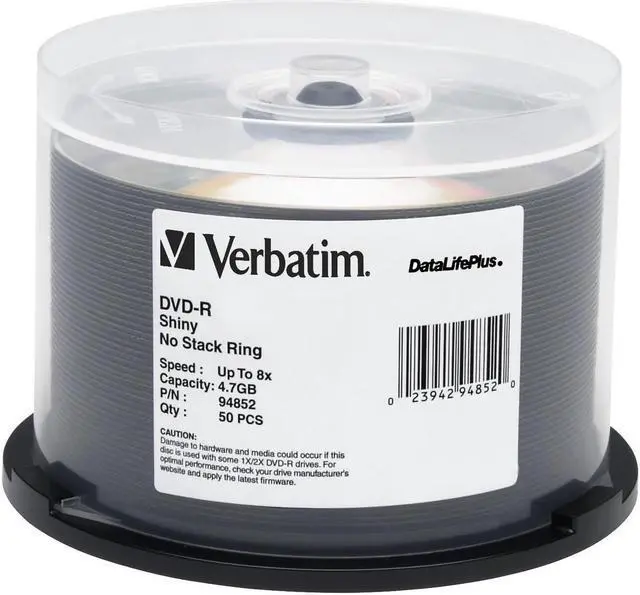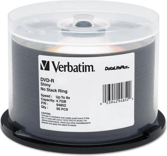 Verbatim 8X Shiny Silver DVD-R media can be used with high speed DVD writers from Sony, Pioneer and others. Verbatim 8X DVD-R discs offer 4.7GB of write-once storage capacity, superior recording quality, and compatibility with 1X to 8X DVD-R writers*. Users can write a complete 8X 4.7GB disc in less than 15 minutes. Verbatim DVD-R discs are based on an advanced "Metal Azo" recording dye, which provides the highest level of performance, reliability, and archival life. In addition, Verbatim DVD-R media provide broad read compatibility with the vast majority of DVD-ROM drives and DVD-Video players in use today.