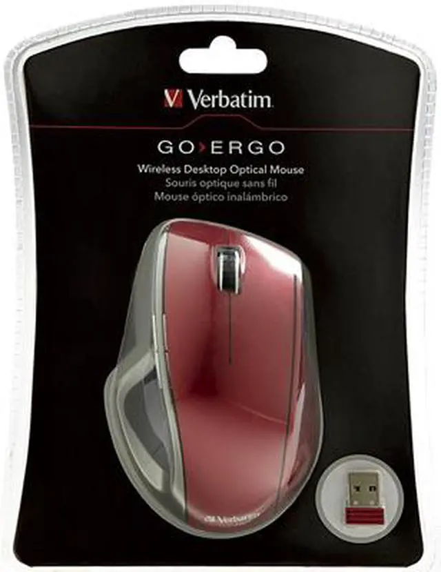 Move comfortably around your desktop with Verbatim's Ergo Mouse. This Wireless Desktop Optical Mouse features a modern design with a convenient thumb support; the super smooth, rubberized grip is made for comfort and control—so navigating your computer is a breeze! Plug in the nano receiver and go wireless with 2.4GHz reliability and performance. The nano receiver is small enough to plug in once and leave connected so it’s great for computing on the go!