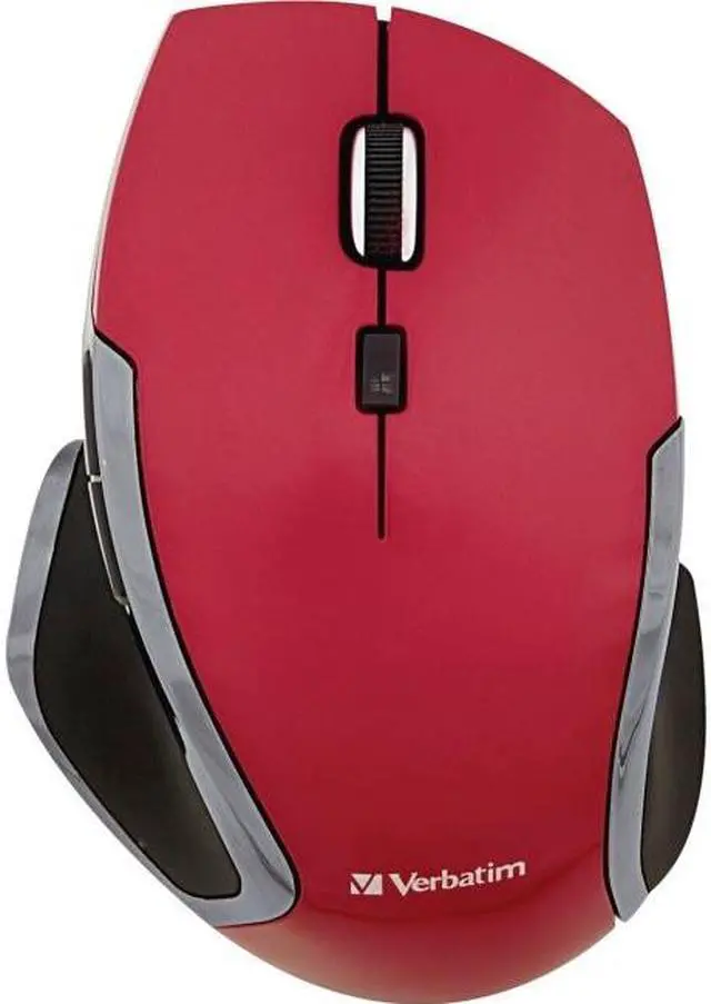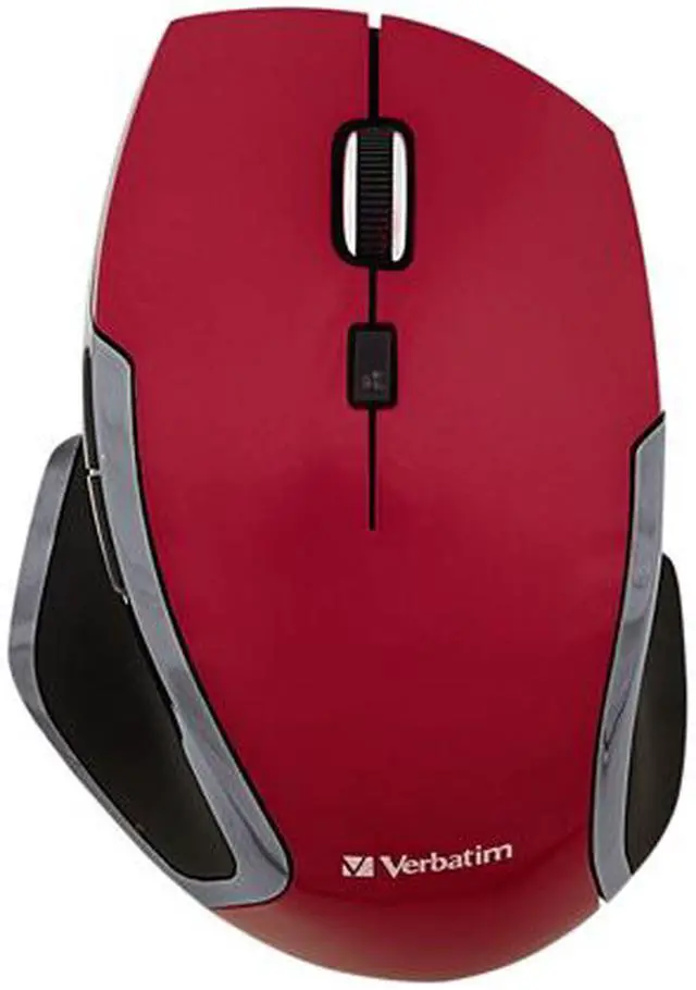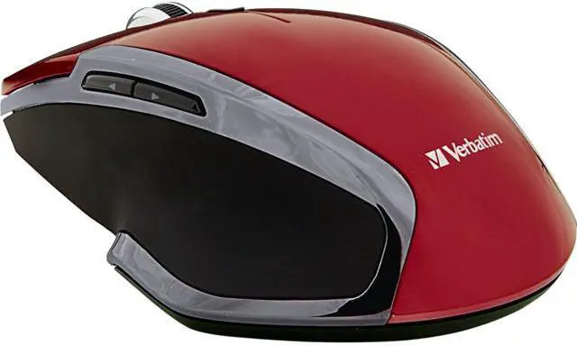 Wireless Notebook 6-Button Deluxe Blue LED Mouse Red. The Verbatim Wireless Notebook 6-Button Deluxe Mouse takes navigation and computing efficiency to a new level. Multi-button functionality enables users to navigate within and between applications with ease - for the ultimate computing experience. Button functionality includes: Standard Left/Right Button, Scroll wheel - click to scroll within web browser or documents - no need to move mouse, Back/Forward Buttons - easily navigate between pages in your browser, Windows 8 Home Button. Verbatim Wireless Notebook 6-Button Deluxe Mice feature Blue LED technology, allowing users to navigate on virtually any surface, from a glass tabletop to granite countertop. Additionally, 2.4GHz wireless performance allows for lag-free cursor movement. The mouse connects to the computer via a nano receiver, small enough to plug in and leave connected - great for computing on the go. When not in use, the receiver stores conveniently inside the battery compartment. The Wireless Notebook 6-Button Deluxe Blue LED Mouse is backed by a 1-Year Limited Warranty. Scroll wheel - easily scroll within web browser or documents - no need to move mouse Back/Forward Buttons - easily navigate between pages in your browser Windows 8 Home button - enhances Windows 8 experience - launch applications quickly and easily Blue LED Technology - Navigate with precision and control on virtually any surface, including glass, granite countertops, hardwood floors, carpeting and more! Wireless - 2.4GHz wireless reliability and performance via Nano Receiver small enough to plug in and leave connected. For added convenience, receiver may also be stored inside mouse. Ergonomic design - Contoured shape with easy-grip surface makes computing comfortable for hours. Blue LED technology may not work on some glass or mirrored surfaces.