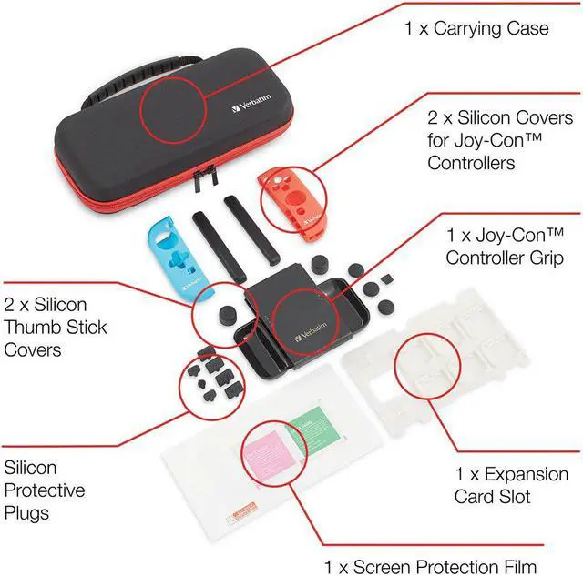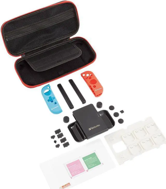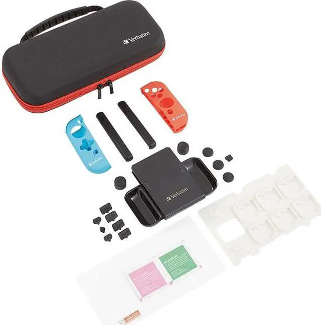 Transport and store your console with the Verbatim Starter Kit. Designed for use with the Nintendo Switch™, this starter kit includes everything you need to protect and travel with your console. A protective EVA case keeps the console safe, with a soft insert for additional screen protection and storage for 10 game cards. The included expansion card slot stores up to 6 more game cards as well as 2 SD cards. The screen protection film protects your console screen from everyday scratches, dust and more. This kit also includes silicon controller covers, thumb stick covers and protective plugs, offering even more protection from dust and debris. And the included controller grip is ideal for long playing times. The Verbatim Starter Kit for use with Nintendo Switch™ is backed by a 1-Year Limited Warranty.