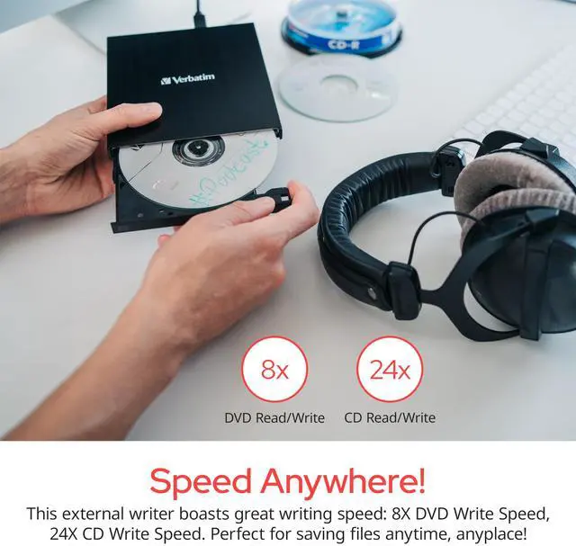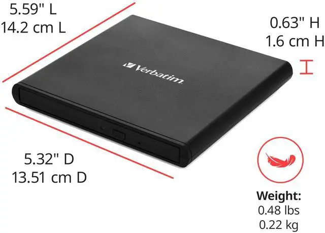 Efficient CD Burner: This slim line external cd drive functions as a reliable cd burner, offering seamless burning capabilities for your data storage needs while maintaining a sleek design.