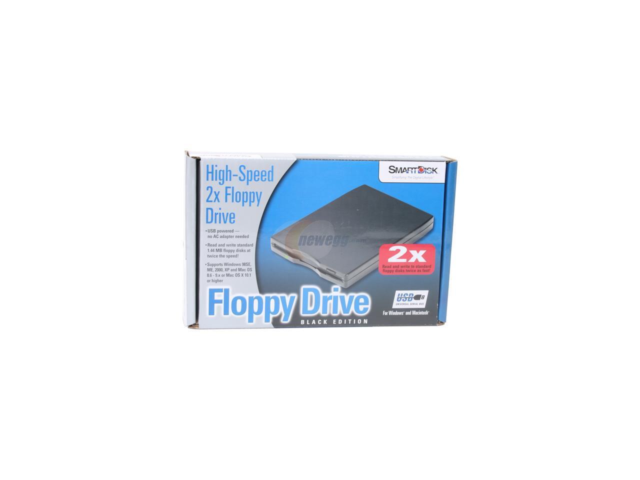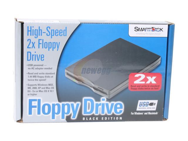 The Verbatim SmartDisk compact external floppy drive slips easily into your laptop bag, so you have access to 3.5” high-density or standard floppies, wherever you go! The unit is USB-powered, so you won’t be stuck lugging a separate AC adaptor. The drive ships with drivers for Mac OS 8.6 and later, and Windows ME and later. Additional drivers are available online. When you need to work with floppy media, SmartDisk gives you 2X read and write speeds, and convenient portability!