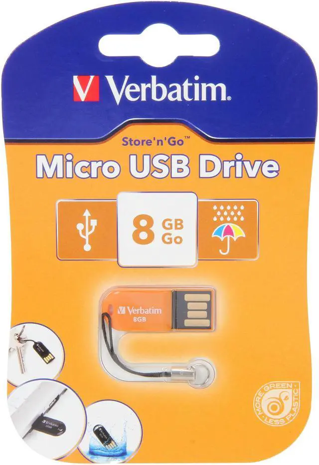The Verbatim Micro USB Drive features travel-tough and water resistant design, offering secure storage in an ultra-compact size. The ergonomic form factor makes handling the drive easy while the ruggedized SIP design makes this an ultra portable, durable and reliable USB drive. The included lanyard makes keeping up with this tiny drive easy when on the go.