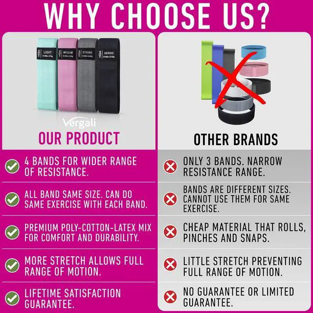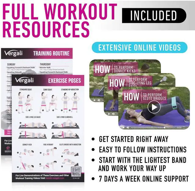The Vergali Booty Bands includes 4 Resistance Strength bands made with high quality fabric material. The inner side of each band contains a rubber grip to help keep the bands in place while you workout. No more worrying about slipping or sliding during each exercise. The bands also include a carrying case making it ideal for travelling. Bring the bands with you to the gym or workout out at home. You can also access our complete video library of exercises online as well as a training guide to help with your workouts throughout the week.
