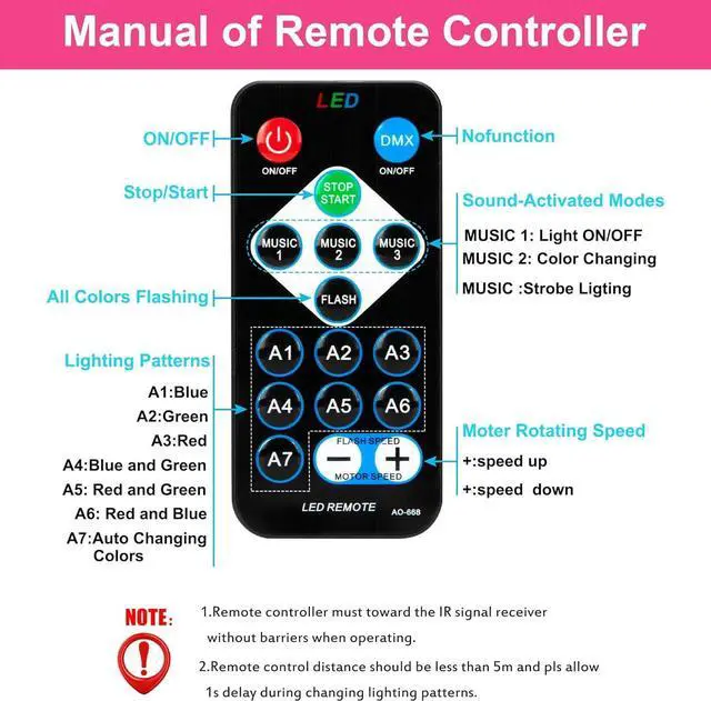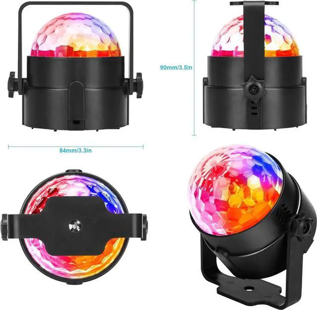 Multi-functional sound activated party lights: 3 sound-activated modes + 7 lighting modes + Rotating speed control