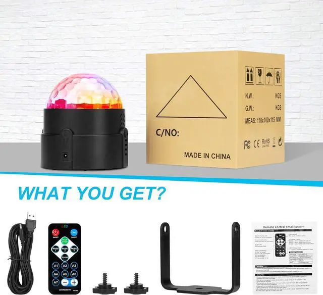 What you get: 1 x disco ball light, 1 x remote control, 1 x user guide. For Luditek party light, in addition to being supply for party decor and home decoration. It is also as a cool stuff toys stocking stuffers christmas gift for kids boys and girls