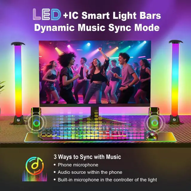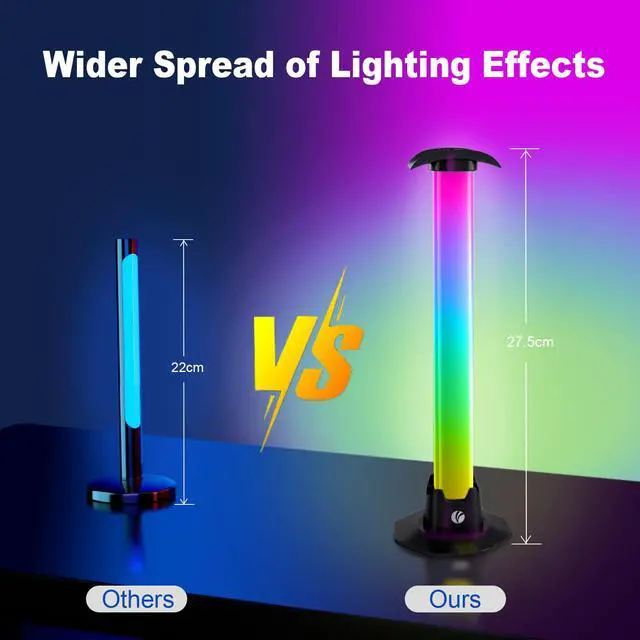 180°Wide-Angle Lighting: The ambient light bar provides a 180°illumination angle, significantly boosting light coverage. This creates vibrant, transforming your room with strikingly dynamic lighting effects