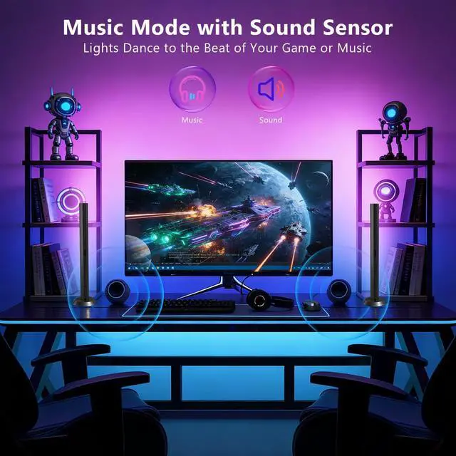 Dynamic Music Sync: With an internal high-sensitivity mic, the smart led light bars syncs smoothly with your music or ambient sound, the music light bar can react and move to the beat of your music, movie, and gaming audio for an immersive sound and light experience like no other. Note: The LED Light Bars only support music sync, cannot sync with tv