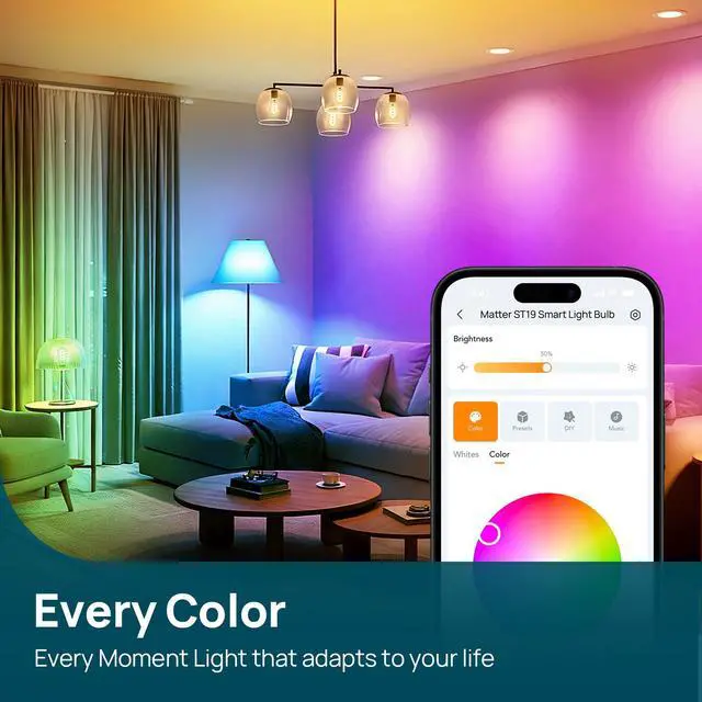 16M Colors & Tunable WhiteThis color changing smart bulb offers 16 million colors plus tunable white 1800K6500K (RGBTW), so you can go from cozy warm ambience for relaxing to crisp cool whites for reading or work. It combines RGB and tunable white in one E26 Wi-Fi bulb, making it easy to set the right atmosphere for movie nights, parties, dinner time, or bedtime with a tap or simple voice command