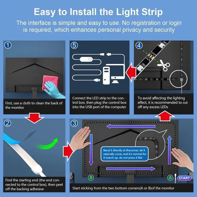 When attaching the LED strip to the back of the monitor, do you have to start from the bottom right corner?