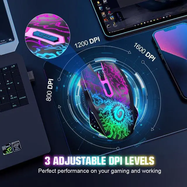 Wireless gaming mouse with 7 color led light
