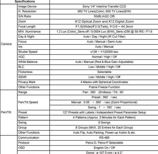 -127 Preset Positions with Alphanumeric Labels