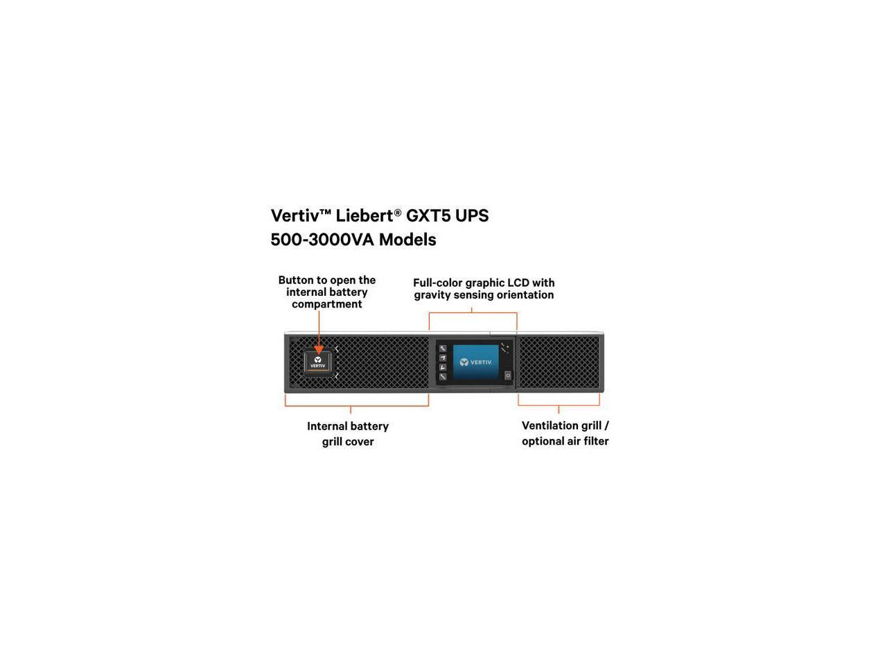 Vertiv Liebert GXT5-2000LVRT2UXLTAAN GXT5 TAA UPS with RDU101 Card - 2000VA/1800W 120V Rack/Tower - 2U | Double Conversion | 0.9 Output Power Factor | Energy Star 2.0 certified with NEMA 5-15P plug