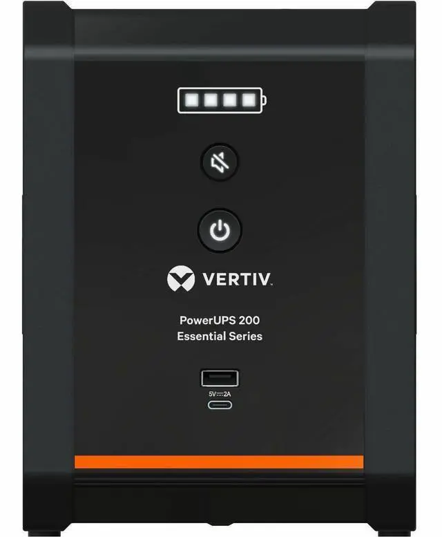 Vertiv PowerUPS 200 Essential Line Interactive Series PSA6E-1500LVT, 1500VA/850W, Automatic Voltage Regulation, Power Supply, Battery Backup, Basic Power Protection, 8 NEMA Outlets