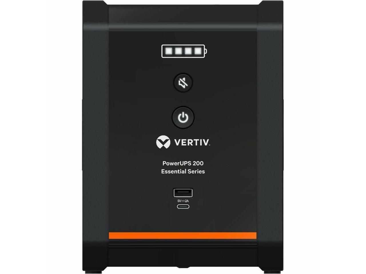 Vertiv PowerUPS 200 Essential Line Interactive Series PSA6E-800LVT, 800VA/450W, Automatic Voltage Regulation, Power Supply, Battery Backup, Basic Power Protection, 4 NEMA Outlets