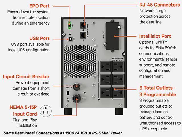 Vertiv Liebert PSI5-1500MT120LI PSI5 Lithium-Ion UPS 1500VA/1350W 120V AVR Mini Tower - Line Interactive UPS | Remote Management Capable | With Programmable Outlets