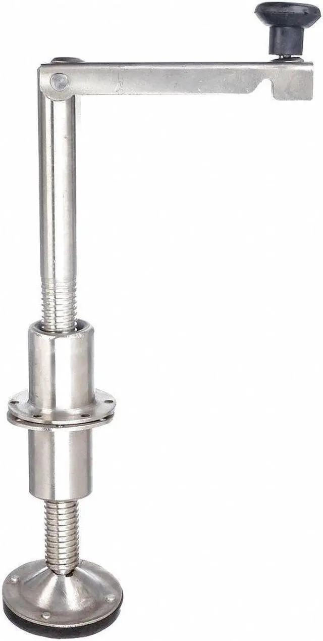 Designed for permanent installation, these screw-style jacks hold platforms and portable equipment in place and keep them stabilized. Typically, for use with work platform applications. Include folding crank handle. Leveling Jack 9 In Travel, SS