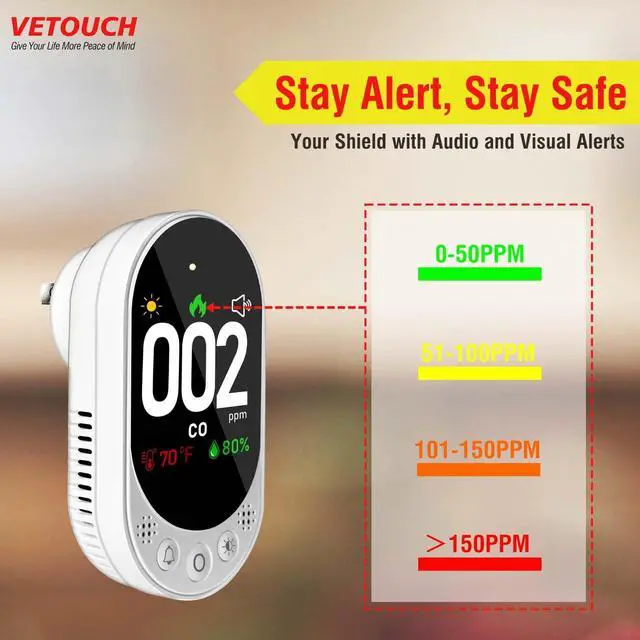 The alarm of the carbon monoxide detector adjusts according to the carbon monoxide concentration in the surrounding area.When the concentration exceeds 50ppm, the device will sound an alarm and flash the corresponding indicator icon.
