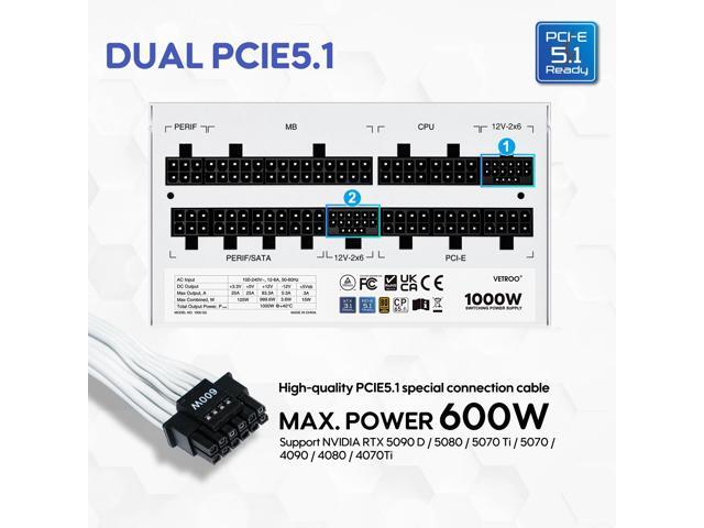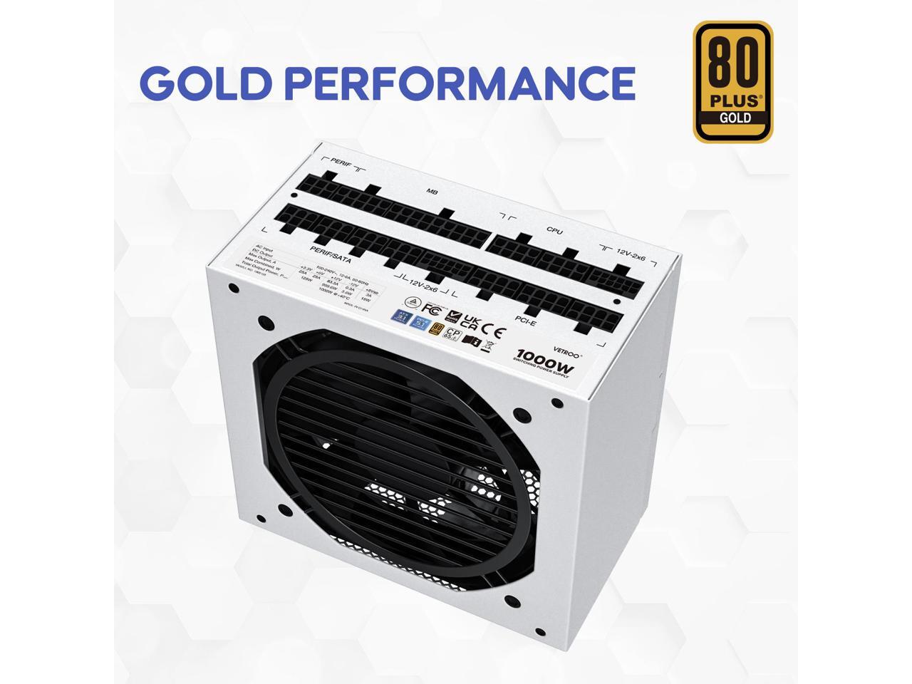 Vetroo 1000W White Power Supply ATX 3.1 Ready Dual PCIe 5.1, 80 Plus Gold Full Modular, Compact Size, Eco Mode with 120mm FDB Fan, 10 Year Warranty, for Gaming PC and More