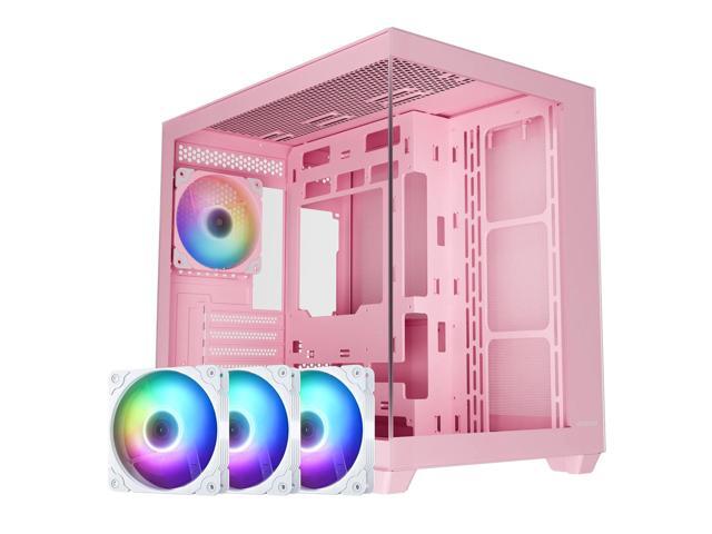 Vetroo AL900 Pink ATX PC Case - 3 Pcs White 120mm ARGB Fan, 270° Full View Tempered Glass, Pre-Installed ARGB & PWM FDB Fan, Supports 360mm Radiator & 10 Fans, Type-C Ready