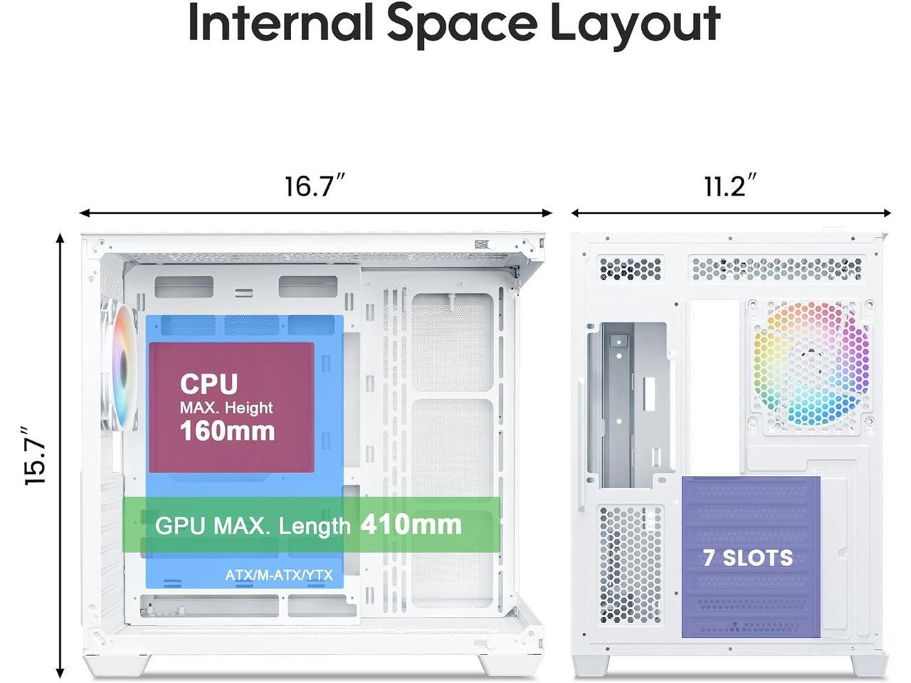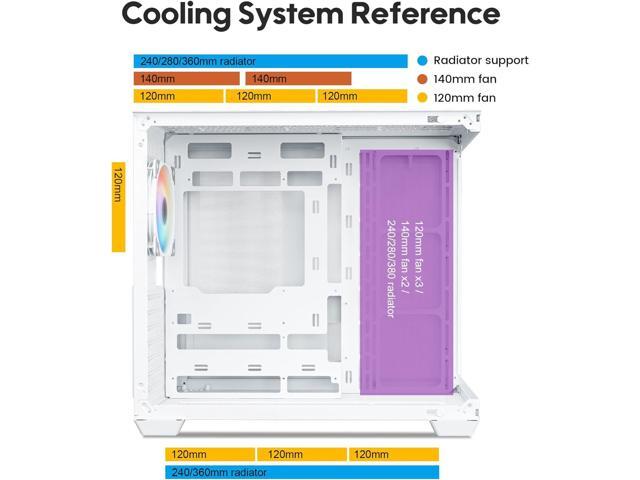 - Compatibility: Support up to 360 mm liquid cooling radiator in top and 10 x 120 mm fans. ATX, M-ATX and YTX motherboard support, max GPU length 410 mm and PSU up to 200 mm