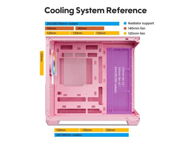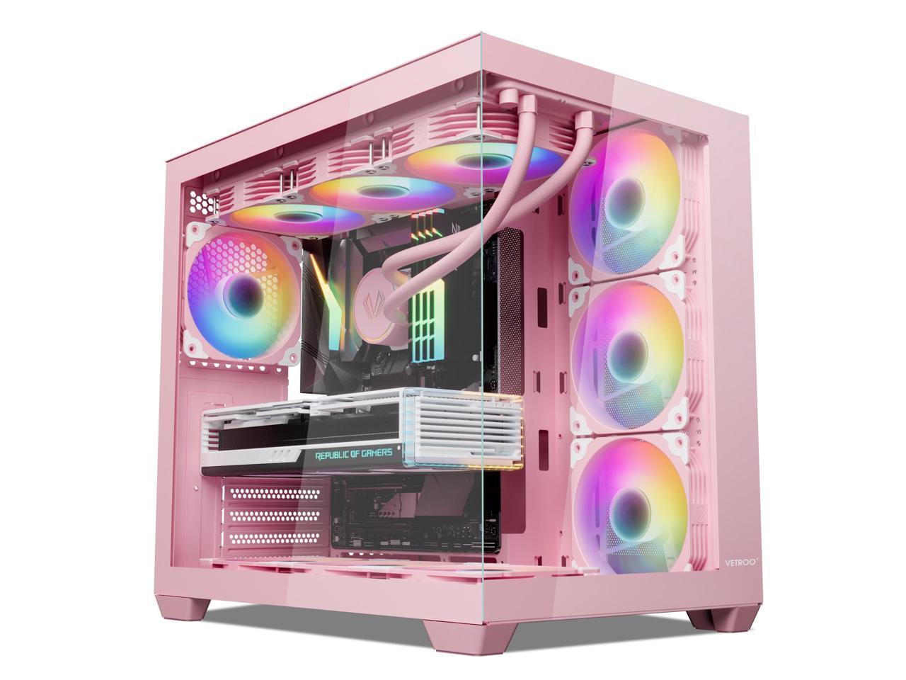 Vetroo AL900 ATX Computer PC Case 270° Full View Tempered Glass Pre-Installed ARGB & PWM Fan in Rear 360mm Radiator Support High-Air flow Perforated Up to 10 fans Support for 50 Series GPUs -Pink