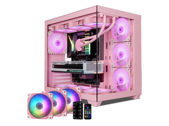 Vetroo AL900 ATX PC Case with 270° Full View Tempered Glass, Supports 360mm Radiator, 4 PWM FDB ARGB Fans with Controller - Pink