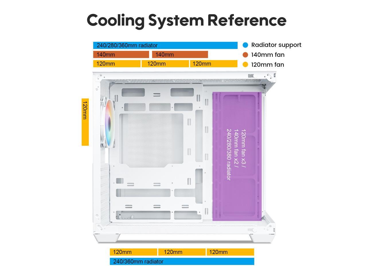 - Case Space Wide Compatibility: Support up to 360mm liquid cooling radiator in top and 10 x 120mm fans. ATX, M-ATX and YTX motherboard support, max GPU length 410mm and PSU up to 200m. Fits all RTX 40 and R7 series graphics cards.