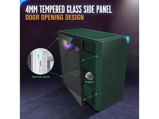 - Door Opening and Tempered Glass Design: Equipped with 4mm thick tempered glass, can clearly see the ARGB lighting and the components inside the case. The convenient door opening design makes it easier for you to assemble the interior of the case.