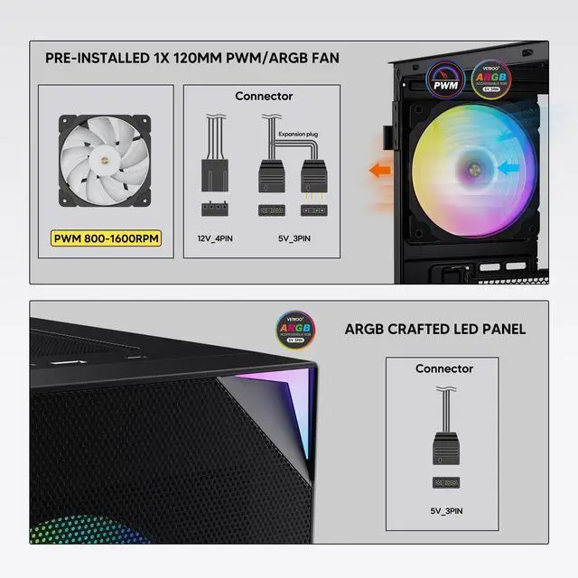 ARGB LED Strip: LED lighting and ARGB case fans can be synchronized with the motherboard via 5V 3pin interface. Crafted design, youthful and energetic appearance make your case unique