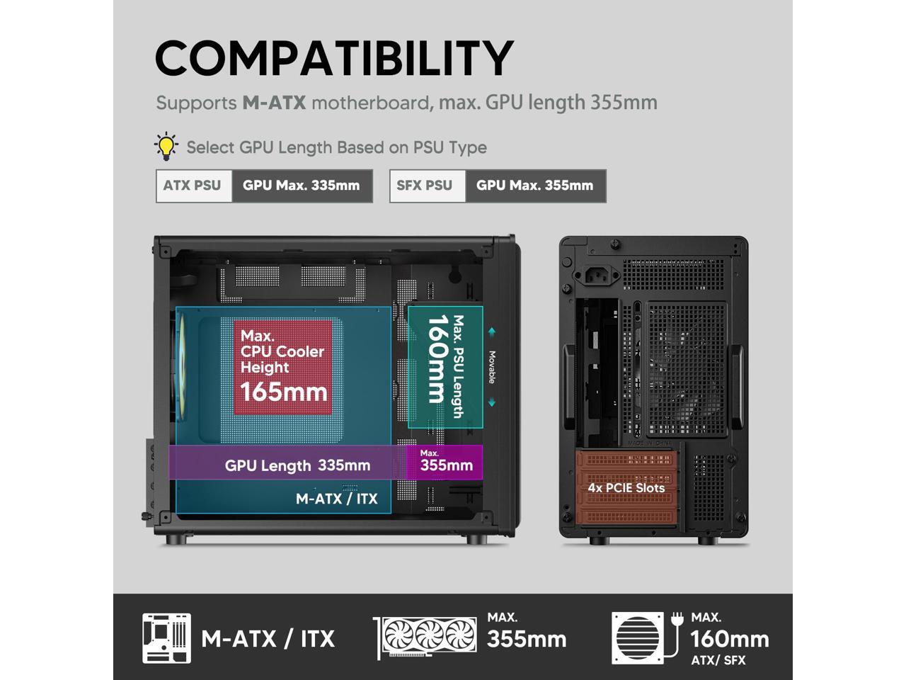 - Room for High-End GPUs: Fits graphics cards up to 355mm long, making it compatible with popular GPUs from NVIDIA RTX and AMD Radeon series