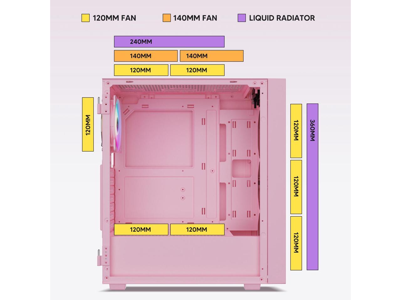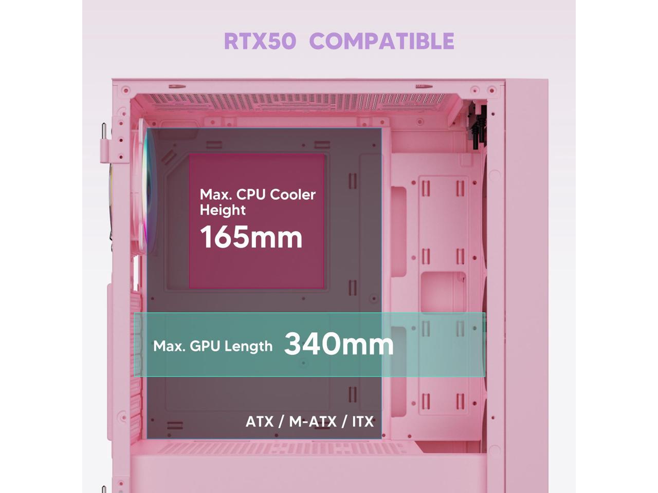 - Wide Compatibility: Support up to 360 mm liquid cooling radiator in front and 8 x 120 mm fan. Support ATX, M-ATX, ITX motherboard, max GPU length 340 mm and fits RTX 50 series graphics cards