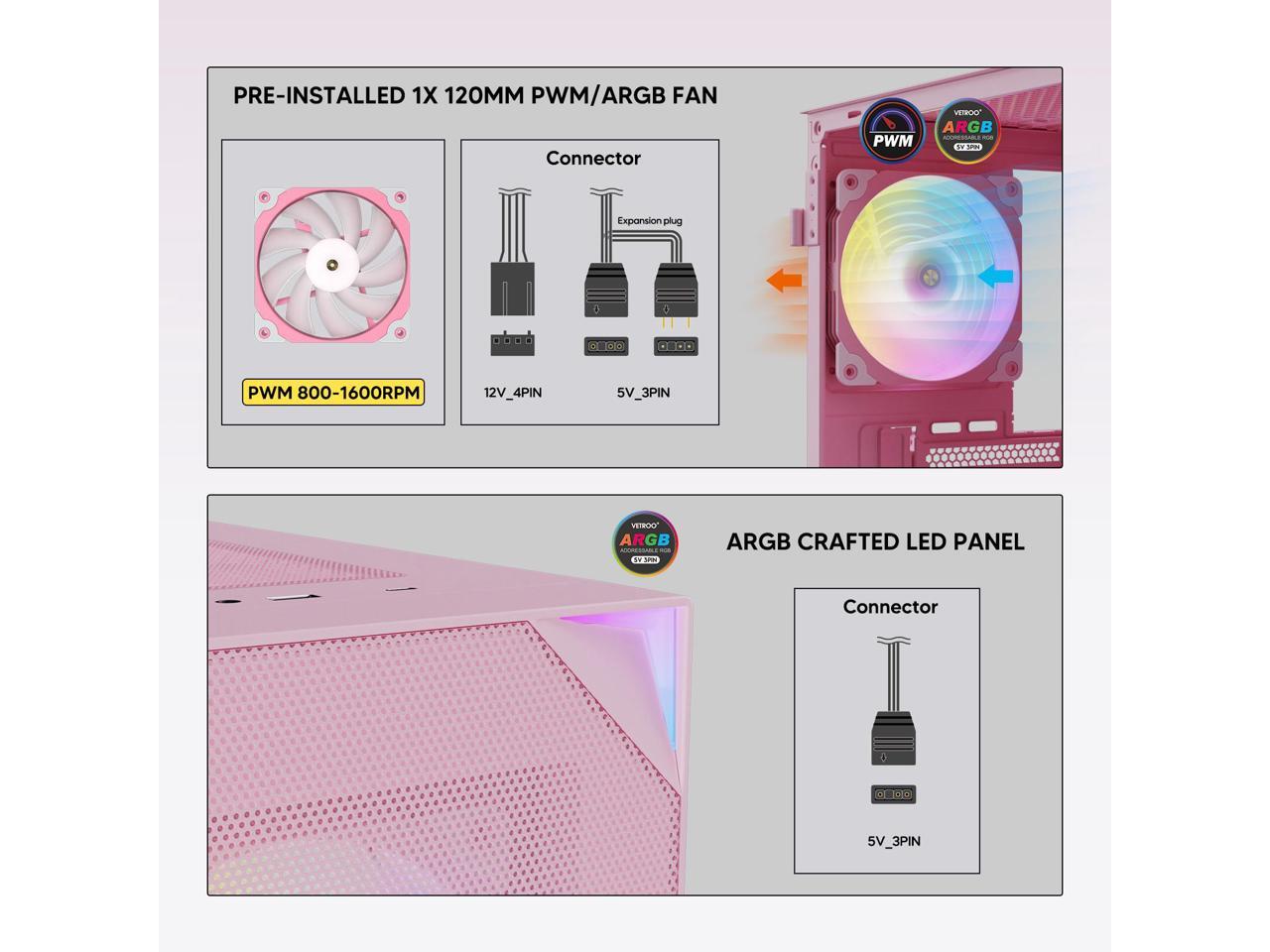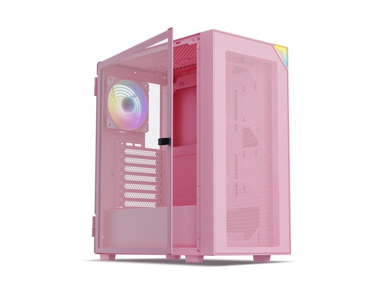 Vetroo AL800 Mid Tower ATX PC Computer Case - Door Opening Design Tempered Glass, Adjustable LED Strip, Pre-Installed ARGB & PWM FDB Fan in Rear, Support for 50 Series GPUs - Pink