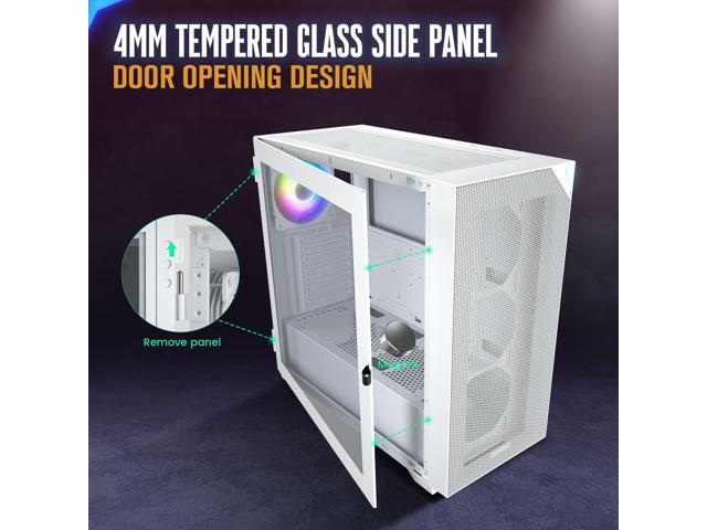 Crafted Design: Youthful and energetic appearance, special led panel design. Equipped with 4mm thick tempered glass, can clearly see the ARGB lighting and the components inside the case. The convenient open-door design makes it easier for you to assemble the interior of the case.