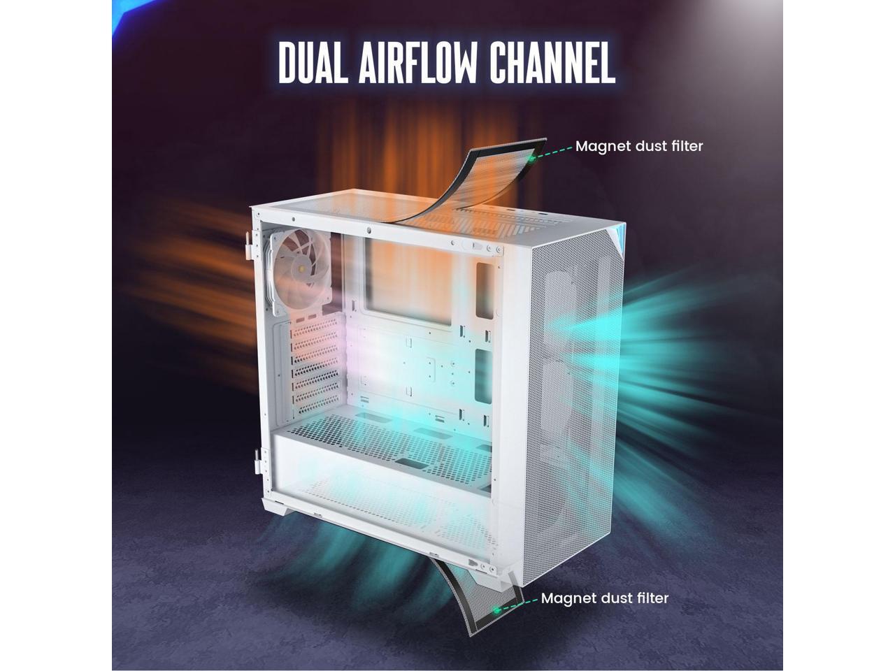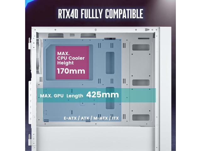 Case Support: Support up to 360mm liquid cooling radiator in front/top and 10 x 120mm fans. Fits all RTX 40 series and RX7000 series graphics cards.