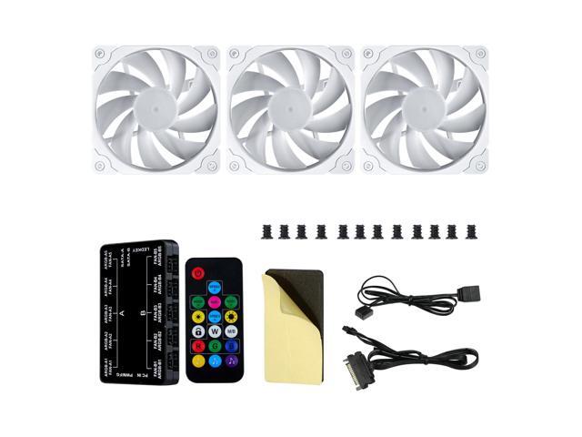 Vetroo 3 Pack 120mm ARGB & PWM Case Cooling Fans with Controller Computer PC Cooler White Frame High Airflow High-Performance with 5V 3pin Motherboard Sync