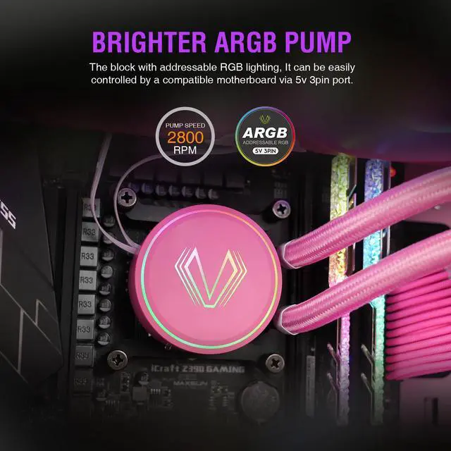 The CPU block with addressable RGB lights , It can be easily controlled by a compatible motherboard (5V 3PIN).