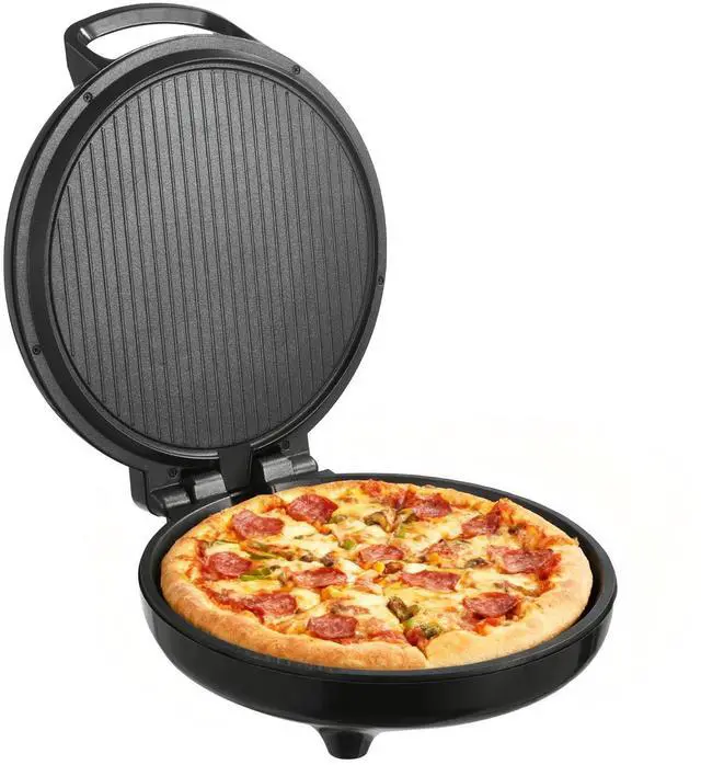 More than a pizza maker, this countertop unit also works as an electric baking pan and grill. Different cooking positions support different temperature ranges, and the 180° open design creates a double-sided surface for versatile baking and grilling.