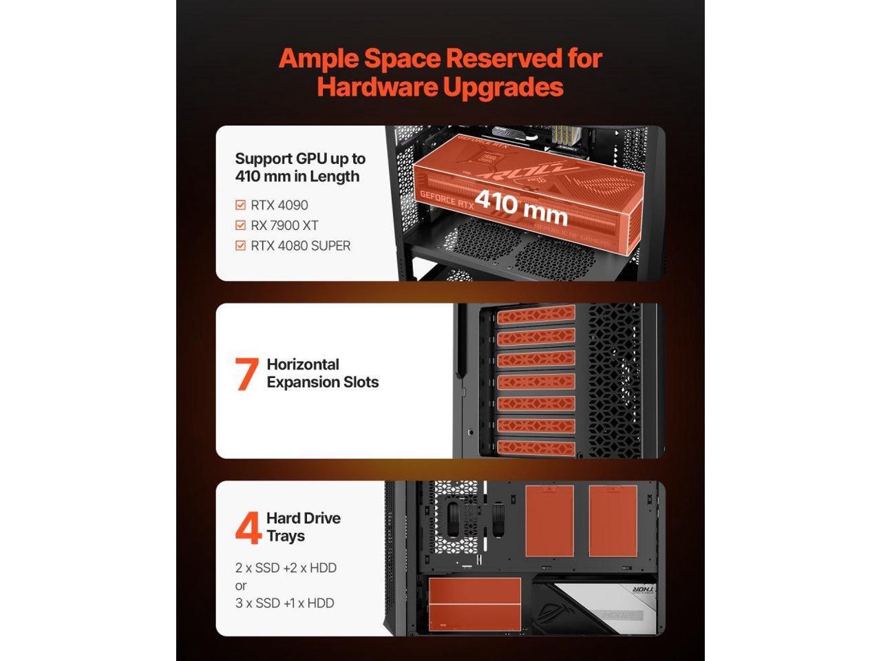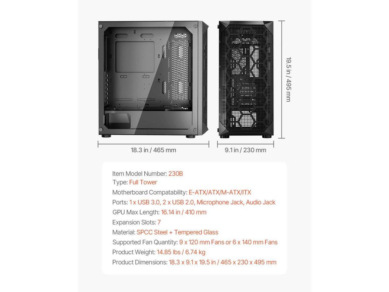 PC Case Full-Tower Gaming Computer Case with 3 PWM Fans for E-ATX Motherboard