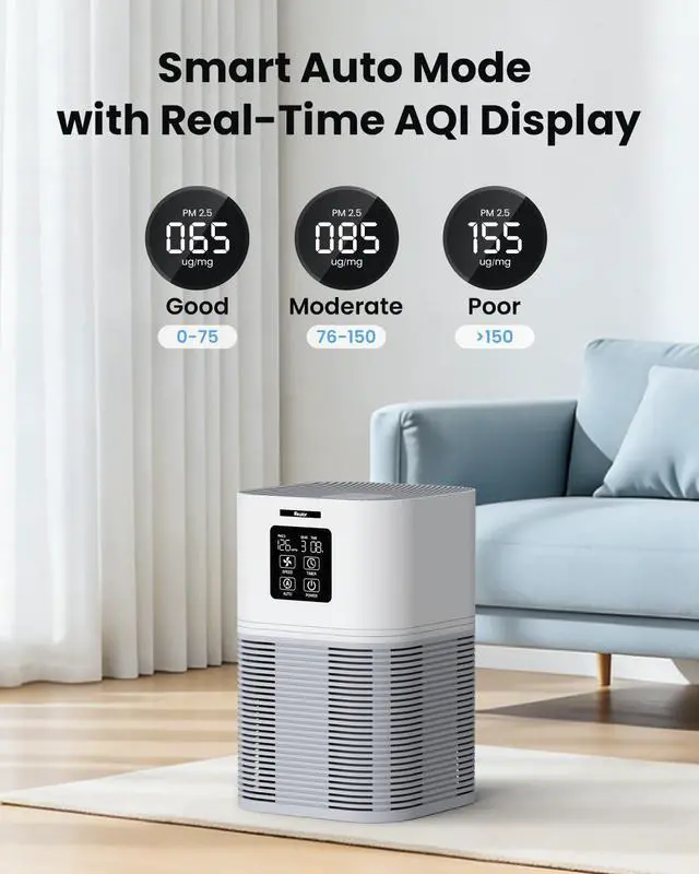 Transform your home's air quality with the VEWIOR H13 True HEPA Air Purifier. Featuring advanced 3-stage filtration and real-time PM2.5 monitoring, this powerful yet whisper-quiet purifier covers up to 1,200 sq.ft while offering unique aromatherapy functionality. Perfect for families with pets or anyone seeking cleaner, fresher air with the convenience of 6 programmable timer settings.