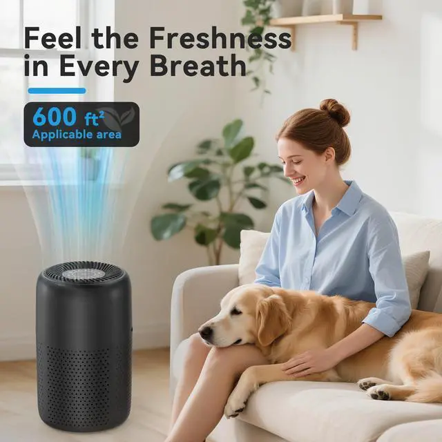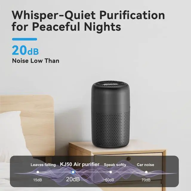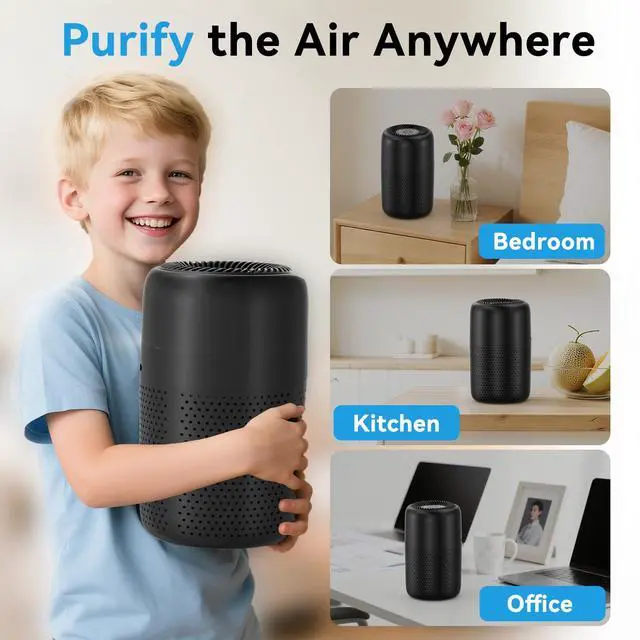 Vhoiu Small Air Purifiers for Bedroom Home Dorm Up to 600 sqft,20 dB Quiet Desktop Air Purifier With Night Light,H13 HEPA Filter,For Smoke Pets Dander Hair Filter,For Apartment Kitchen