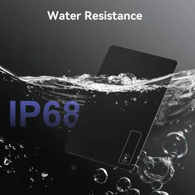 Ultra-Slim 0.07in Profile with IP68 Waterproof Protection: Measuring just 0.07 inches thin, this wallet tracker card fits seamlessly into any wallet or cardholder without adding bulk. Built with IP68 waterproof durability, it resists coffee spills, rain, and everyday wear for reliable performance