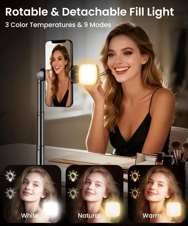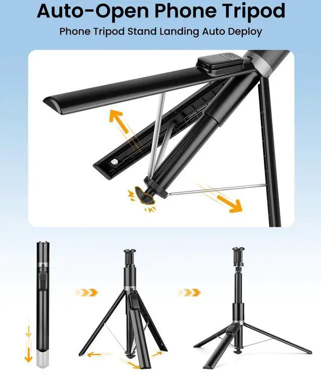 Phone Tripod, 68" Selfie Stick for iPhone/Android, Phone Tripod Stand with Remote & Fill Light, Extendable Cell Phone Tripod for iPhone/Android, Black